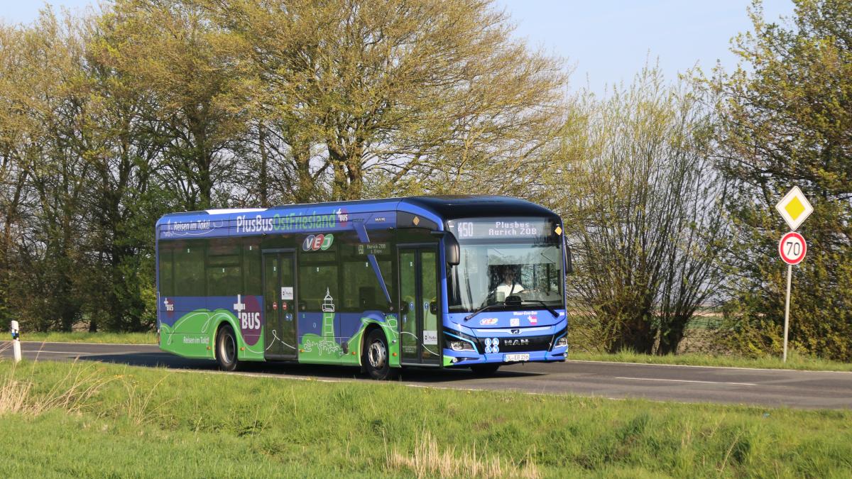 Im Landkreis Aurich fahren zwei neue E-Busse im ÖPNV, gefördert von der LNVG. Wie stark dämpfte der Winter die Reichweite, und warum?