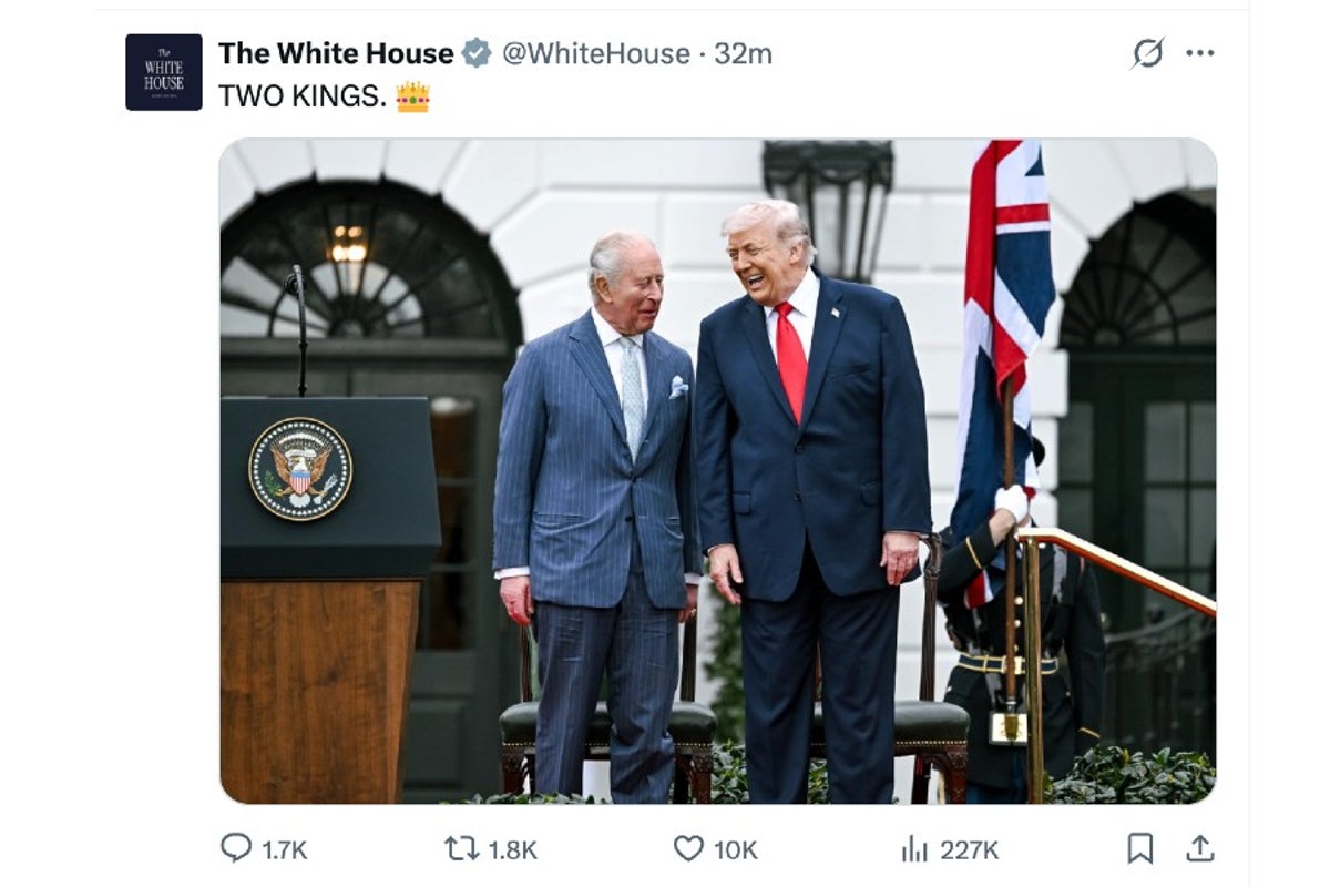 The White House shared the image captioned ‘TWO KINGS’ as King Charles III praised American democracy