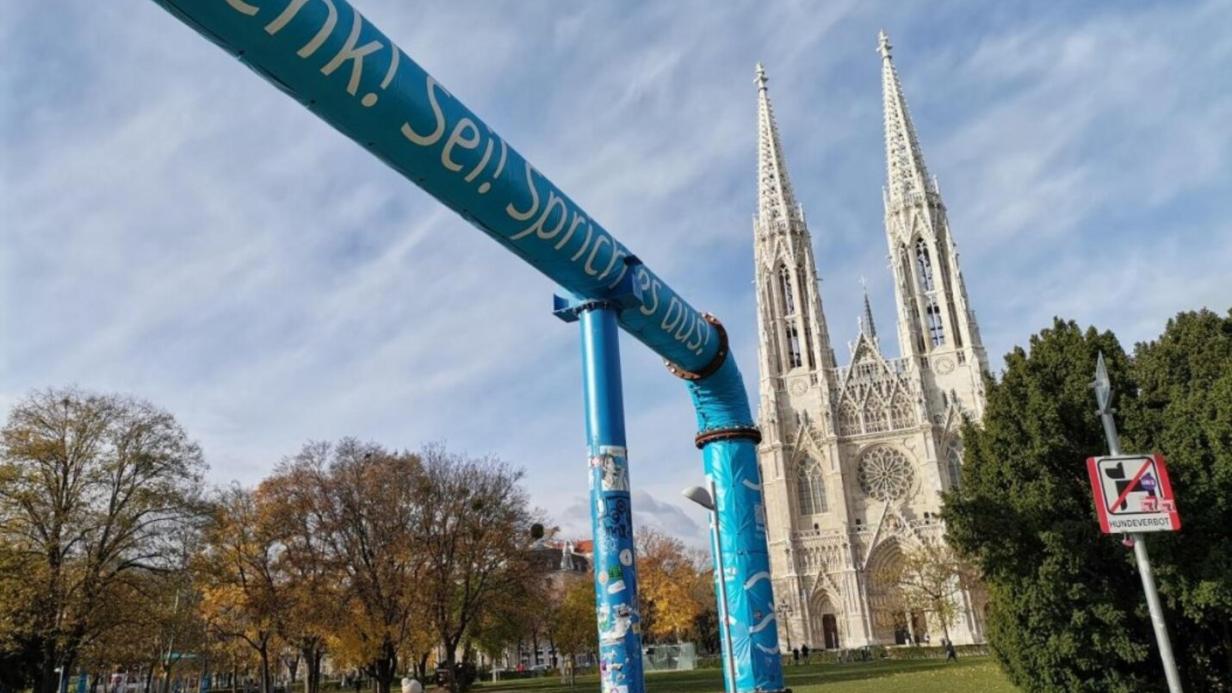 Vier Jahre prägend für's Stadtbild: Die blauen Rohre verschwinden